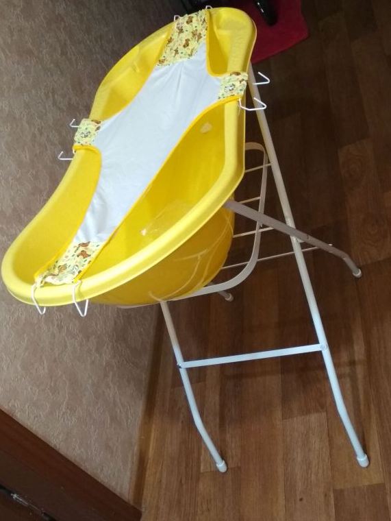 С рождения дочь купали в ванночке, сначала на гамаке,т.к. горка пластиковая была слишком резка для нее.