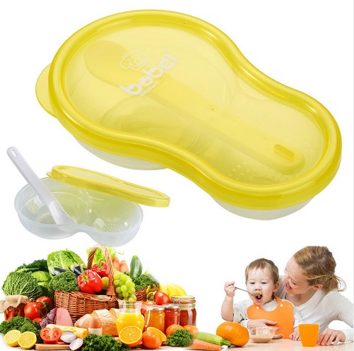 2. Тарелка для кормления на 2 отделения + ложка - очень крутая вещь, в комплекте с крышкой. Мне было удобно, когда ребенок кушал овощи (кашу) с мяском или рыбкой. Удобно было брать с собой, когда ходили в гости или гулять летом. Использовала с 6 месяцев после введения прикорма. Цена 4,44 доллара.
