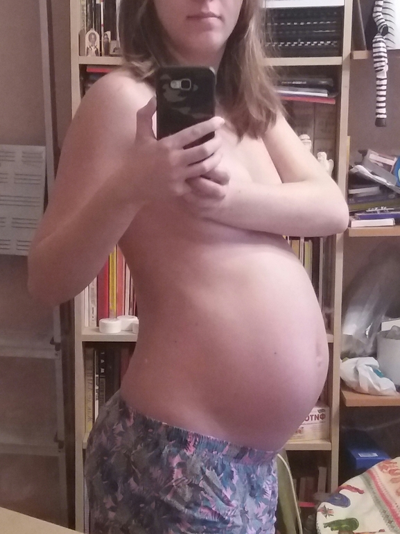 Дитя вовсю пихается, даёт о себе знать. Я всё ещё не понимаю, как она лежит, надеюсь, ей там удобно)
