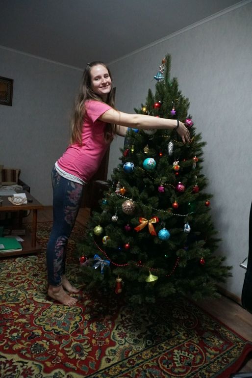 Позавчера вечером нарядили нашу елку - она единственная старается настроить нас на новогодний лад :) Включаю каждый вечер огонечки на ней, чтобы нас радовали.