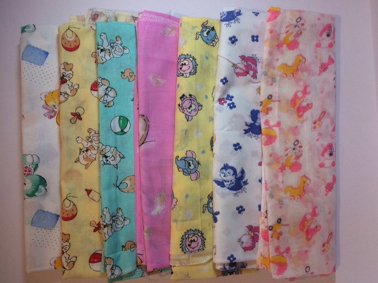 1. Пеленки тонкие всех цветов радуги, размеров и плотности. -7 шт.