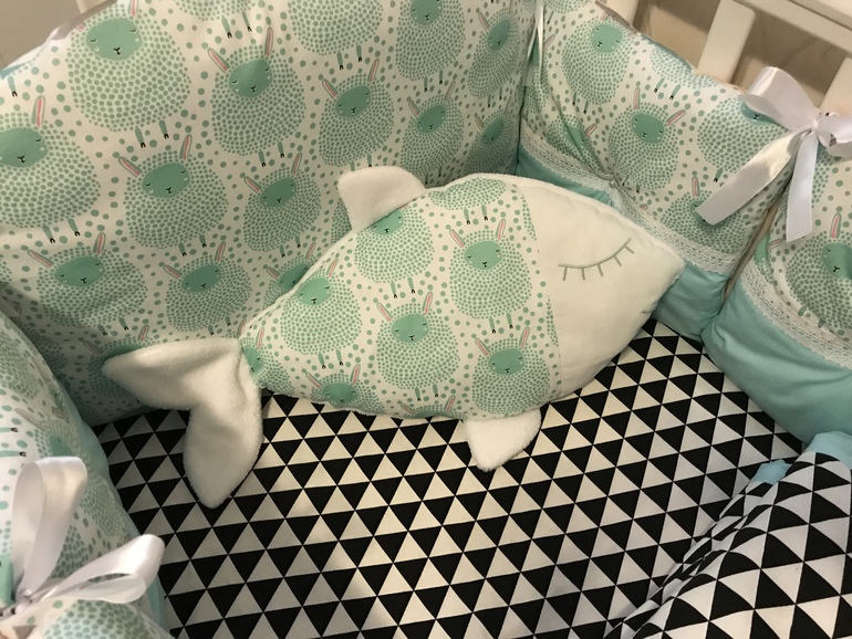 Руки чешутся сшить набор постельного в кроватку: бортики-подушки, 2 простынки, кармашек для мелочей.