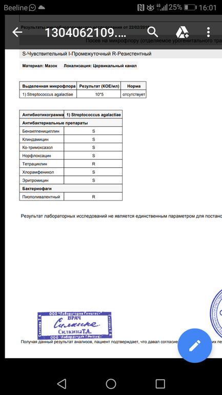 У вас выявлен стрептококк агалактиа в титре , с которого начинают лечение. Чувствителен ко всем препаратам, кроме тетрвциклина и бактериофага.