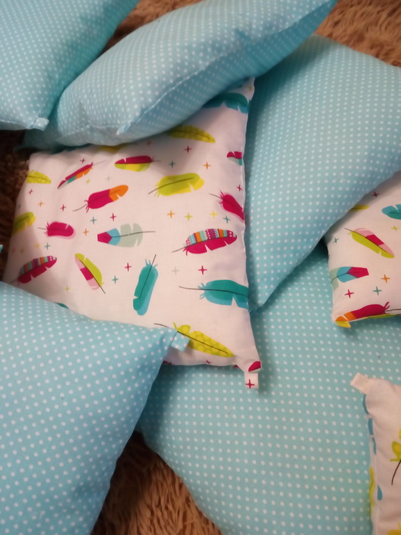 шила сама бортики, наполняла холофайбером + отдельно наволочки на молнии и завязки с 4-х сторон.