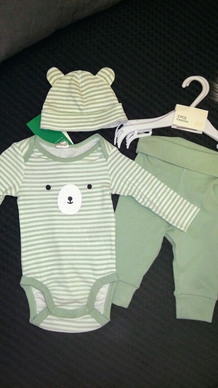 - я конечно же купила уже кое-чего всякого из одежки))) пару бодиков взяла по скидке)) один потеплее, вдруг прохадно будет. Пару размеров 56, остальные 62. Боюсь, что мы будем длинненькие. Все-таки сынуле есть в кого : мама 180 , папа 190см 😂 Смотрите, что у меня уже есть)) один из бодиков , правда, неудобный- через голову одевать, но я просекла это только дома, не уследила за собой в магазине😄