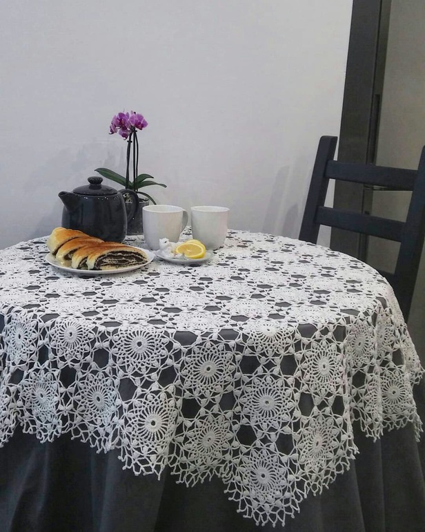 -чтобы не заканчивать на грустной ноте, поговорим о каждодневных радостях: мой рацион и пристрастия в еде никак не поменялись, я балую себя каждый день фруктами, шоколадками, булочками. Вчера вот оливье делала)) хочется бокальчик хорошего вина мммм))) обожаю кофе, чай с имбирем и чабрецом. Недель с 16 стала лежать в ванне. Хожу раз в неделю в бассейн. Обожаю плавать и вообще всякие водные процедуры. Вышиваю крестиком картину, скоро закончу и сосредоточусь полностью на вязании для малыша. Узнала по большому секрету, что свекровь дарит мне на др швейную машинку, я просто счастлива))) буду шить постельку сынуле. Может, бортики, еще не решила. Подружка моя рожает в апреле, очень переживаю, у нее тоже первые роды, доченька. Как все пройдет, как будет, ой страшно пока даже думать🙈😃 будет меня учить как ухаживать за малютками, будет уже в теме к моим родам 😄😄 удобненько!))) ну вот такие новости у нас. Больше пока покупок не планирую. Начнем закупаться после майских праздников. Всем-всем девчонкам приветик! Хорошего настроения и самочувствия! ☺️💐😻 пусть ваши малыши будут здоровы и радуют вас! Пойдем с сыночком пить чай с конфетками))) напоследок уютное фото)) это мы делали недавно маковый пирог)) ну и моя скатерть связанная, я ее потом убрала, жалко стало пить на ней чай😂😂😂