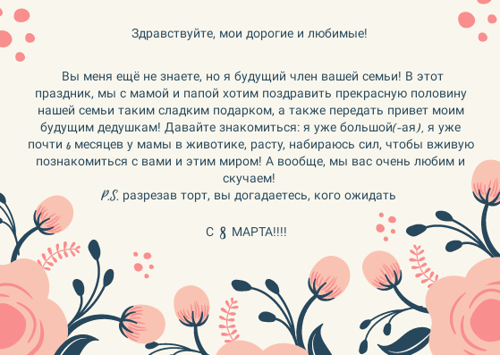 Как я сообщила о беременностиРанее писала о планах на сюрприз. пережила это 8 марта, все живы здоровы, слава Богу😁 нанервничалась с 6 утра. Торты заказаны были, проснулась, ждала пока отпишутся об оплате. Потом сестренка пишет, что мама собирается в магазин, хочет купить торт. И началась спецоперация "задержать маму на минут 40 дома". 😁 муж позвонил, поболтал. Потом я. И наконец-то приехал курьер. Удивились, конечно, курьеру, ошиблись, наверно, говорит. Открылирвли коробку, а там вот такой тортик.