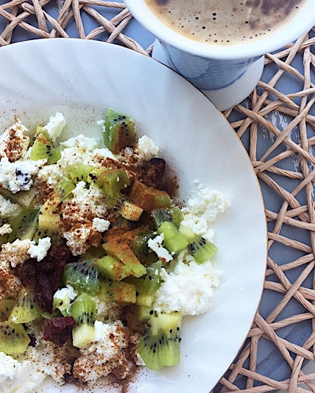 Творог сметана клюква корица и киви,но не всегда иногда груша