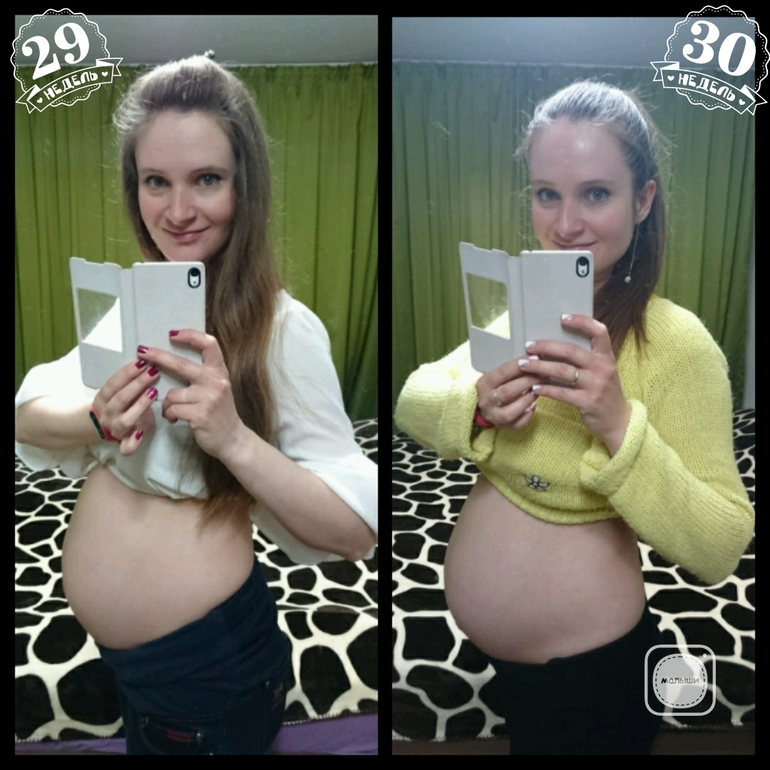 Живот значительно прибавил в период с 29 до 30 недели, прям заметно стал круглее, теперь все тяжелее наклоняться, но пока ещё я на это способна.