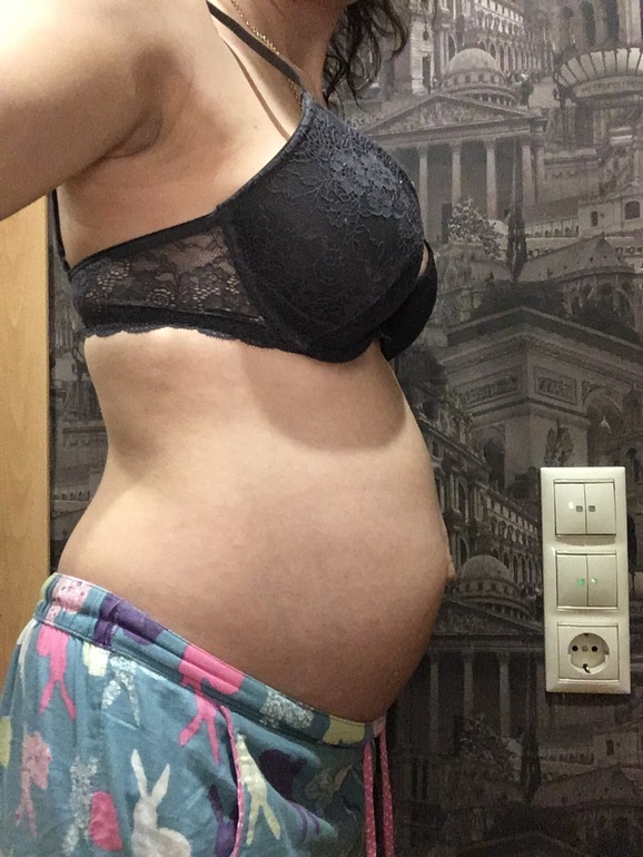 У меня по сравнению с вашим животиком-барабан)))) Но и беременность третья, в эту прям резко вывалился))) Прибавка 5 кг