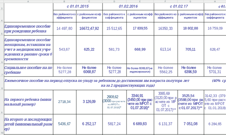 Так в этой табличке так же никто не обещает 8 тысяч. Или вы графу с районным континентом смотрите? Тут я вообще не вижу размера пособий с мая.