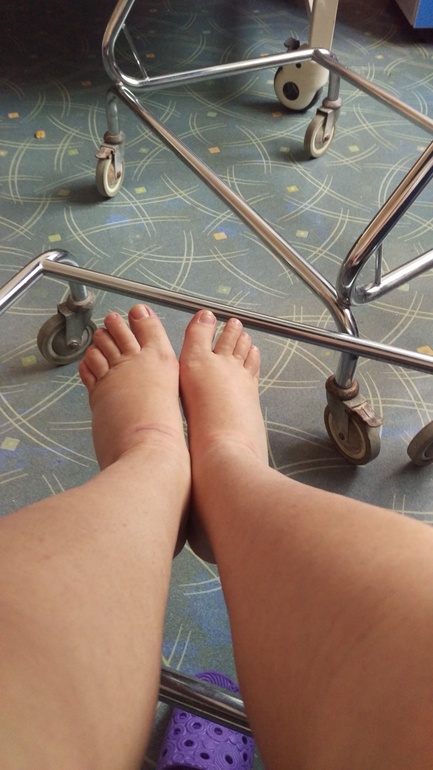 Дважды так было. Сейчас вот думаю в какой обуви выписываться.. Потом ещё неделю дома отёк дрожал, бесило так. Ножки повыше поднимайте и лежите. При чем мне в первый раз ноги бинтовали а второй раз нет. И в оба раза такая хрень. В тапки не влезали.