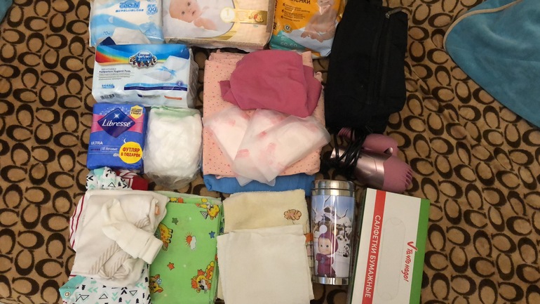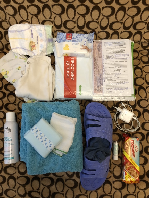 На фото не все поняла, но в целом - одежда вам (ночнушка, халат, носки, тапки), одежда ребенку, подгузники, прокладки, одноразовые трусы. Всякое для гигиены - гель для душа, зубная щетка и паста, полотенца себе и ребенку. Туалетная бумага. Чашка-ложка-тарелка - не помню, все ли мне понадобилось, но чашка с ложкой точно. Чай в пакетиках. Гаджеты с зарядками.