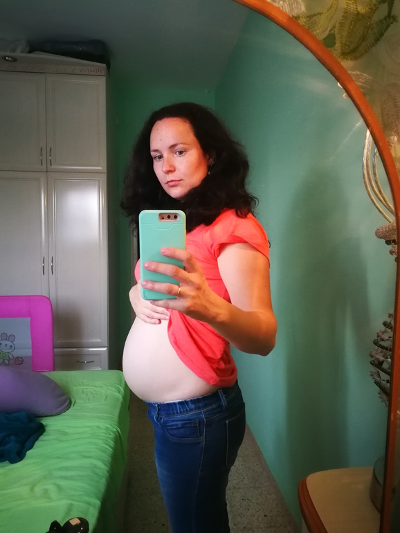 ЭкваторПоловина пройдена, осталось ещё столько же) Я уже перешла в беременные джинсы,вот на днях достала футболки,которые носила в прошлую беременность.Живот конечно большой, непривычно большой для такого срока,учитывая что я сама не крупная. Интересно каким же он будет к родам, наверное совсем огромным.Самочувствие нормальное,правда иногда тошнит и рвёт, особенно в дороге.Недавно ,вот уже два раза во время рвоты почувствовала выделения,аж до мокрых джинсов.Испугалась,что воды подтекают.Оказалось выделения.Первый раз такое,я в шоке если честно.Гинеколог мой подтвердил,что все в порядке и это не воды и так бывает.Малышка вот уже пару дней как толкается,все точно также как и с дочкой,на том же сроке. Живот тянет уже меньше,что радует)