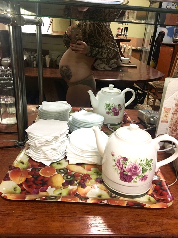 Наши будни, наши неделькивот мой живот на 34 недели. Когда ребенок считается доношенным ?. Вчера после ПА была капелька крови, впервые за 34 недели такое. так и непонятно что это было;) это фото с работы еще вчерашнее, с сегодняшнего дня я на отпуск заслуженный :))) работаю я администратор, бармен, официант, это не сидячая работа ...снились мне в ту ночь Камыши, и весь город затоплен водой, а сегодня ночью паучок черный, который меня укусил, значит это в соннике что будет мальчик;) ну это уже и так известно =). у меня еще не сложена сумка в роддом, что самое необходимое? такое без чего обойтись невозможно? думаю уже через неделю Две собиратса.