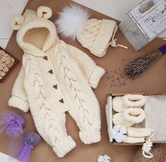Еще на случай холода заказала комбинезон вязанный и пинетки (обажаю вязанные вещички для деток) уже получила и постирала...