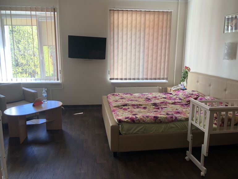 Палата тоже очень понравилась, большое помещение, огромная кровать для нас с мужем, люлька для малыша, шкаф, холодильник, чайник, телевизор, интернет, кресло/стул для гостей, журнальный столик, туалет, душ... в общем все-все-все самое необходимое) чувствована себя очень комфортно, как дома! Совершенно не было ощущения больницы! Это крайне важно, именно этого я и хотела🙏🏻