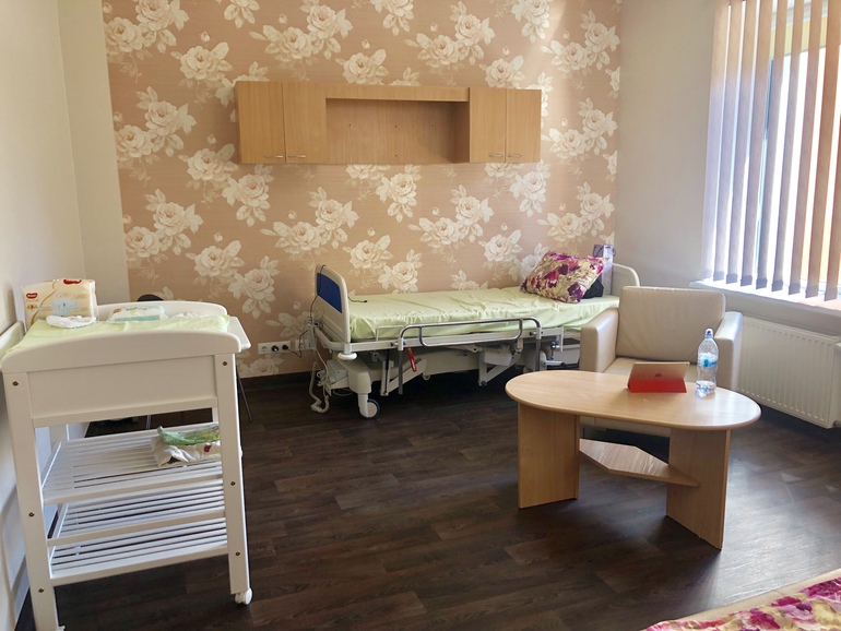 В палате стоит ещё специальная кушетка, если роды естественные, чтобы рожать прямо в палате и никуда не выходить)