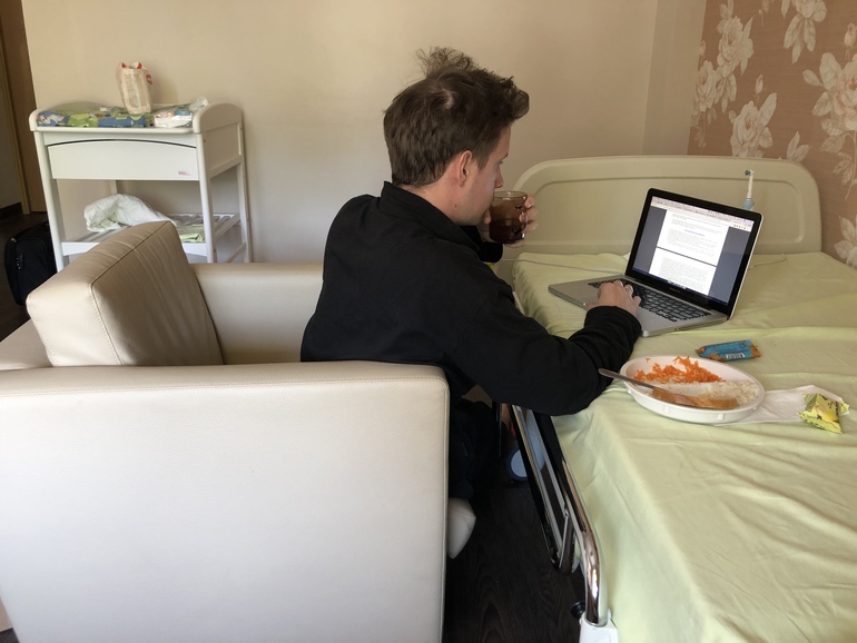 В больнице мы были в 04:00. Тишина кромешная, все спят, персонал в том числе)) Ходили по кабинетам искали медсестру. Передо мной приехала ещё одна девушка, третьи роды, ее взяли первой. Меня спросили есть ли договор с больницей, на какую палату и так как мы брали Люкс «Домашний стационар» меня сразу определили в палату, вручили казённую ночнушку и сказали ждать.