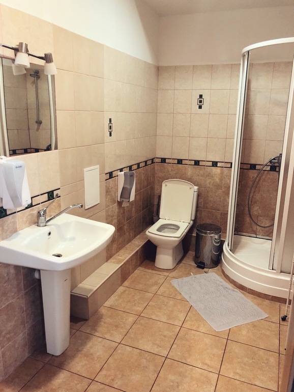 В душе все необходимое, мыло, салфетки, полотенца, гель для душа)