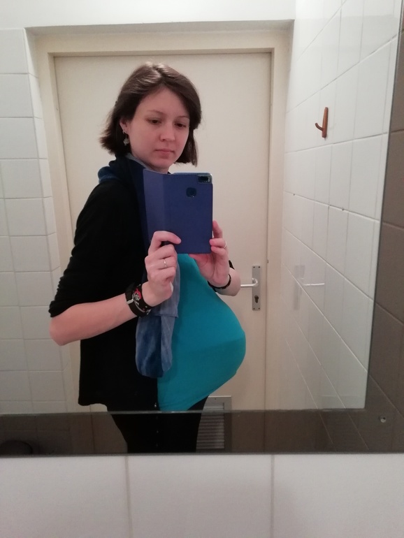 Это мой пуз.))) Опустился или нет? Почему с 14 пролетаешь? По идеи завтра с врачом вы должны выбрать дату рождения дочери! А я опять сбегала домой- с дочерью погуляли, помылась, отдохнула на своей кровати!)))