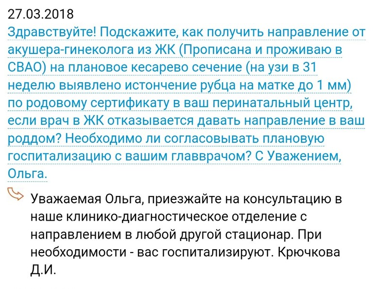 Я в итоге не пошла на консультацию по направлению, так как в итоге планировала контракт заключать, а у них там могут разные врачи принимать (в платном и в кдо). В КДО по направлению вы попадаете к дежурному врачу, который в этот конкретный день ведет прием. А кто не известно...
