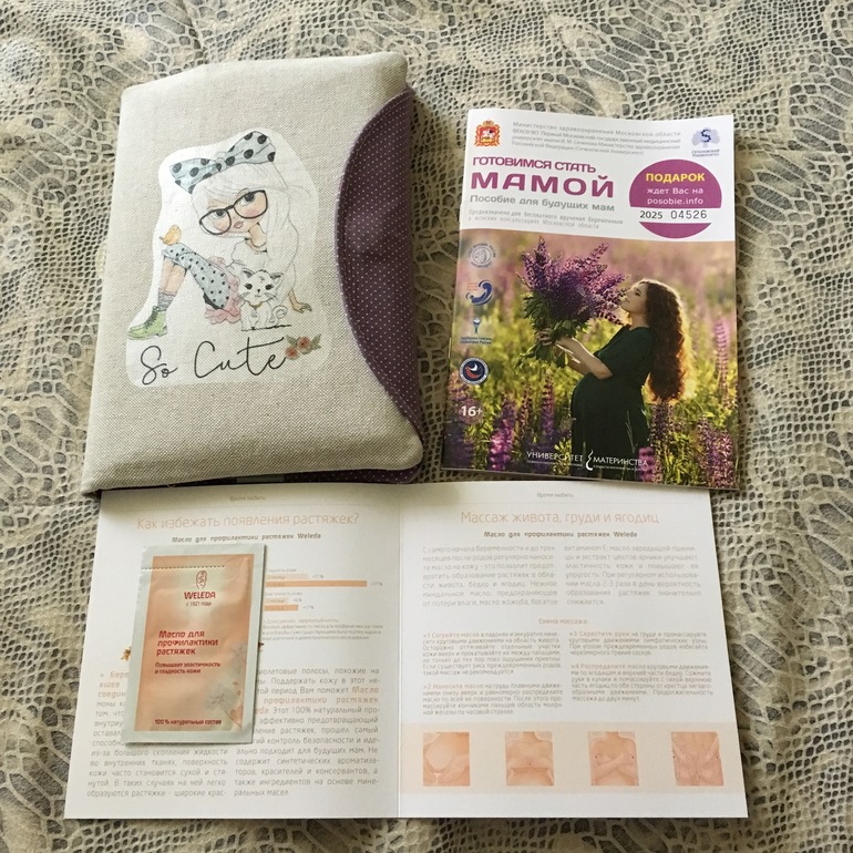 И в конце мне ещё выдали такую брошюрку и пробник какого-то масла от растяжек. Пробовал кто? Есть эффект?)