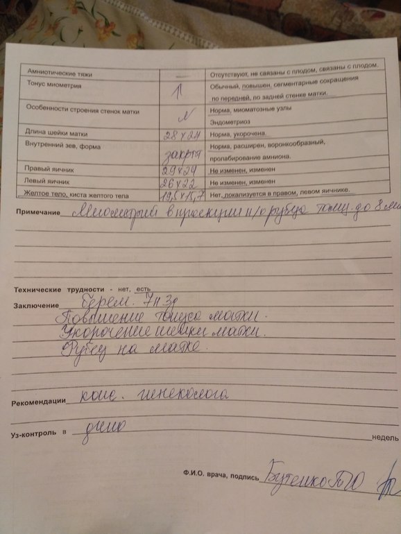 УЗИ, КТГ, доплерВ общем после эпопеи с прогестероном, назначили мне УЗИ. Самое главное что есть эмбрион, КТР 11,6, сердцебиение тоже есть. Жёлтое тело 19,5×15,7