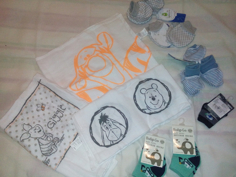 боди 1 шт. р.50 (на всякий просто случай, УЗИ было давно, а по нему мы малышами прям были, меньше нормы), 4 шт. р.56, 5 шт. р.62,