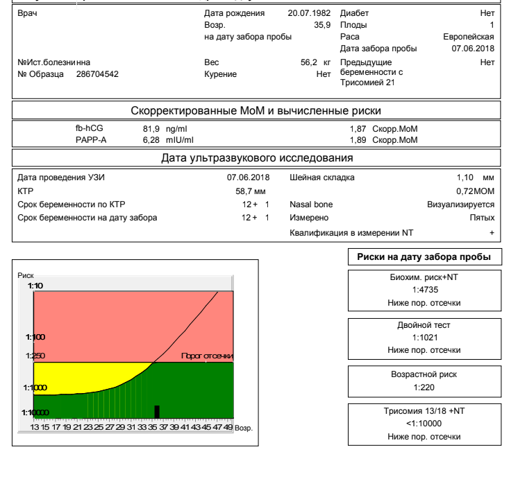 У вас в норме значения биохимического скриннинга, нужно смотреть не на абсолютные значения в листке инвитро, а на скорректрированный МоМ в листке расчета рисков. У вас все хорошо
