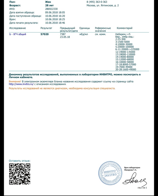 Но скажу Вам честно, извините за прямоту - лично меня немного настораживает прирост хгч - он, конечно, не всегда удваивается после 6000 плюс растёт у каждого индивидуально, но с 23 мая прошло все же достаточно времени до следующей сдачи. Даже если брать удвоение раз в 3/4 дня, вроде цифра должна быть все же побольше...