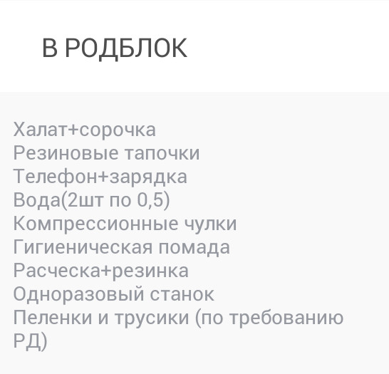, свою если только после родов можно надеть, на роды лучше их местную, тк испачкается 100%. Остальное вроде бы все по делу. Я ещё фен дорожный брала и одноразовые пеленки.