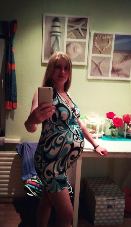 Я бы не одела.Мне как то стремно пуз обтягивать.Хоть он у меня малюсенький,а у вас огромный.По свободнее что то нужно одеть