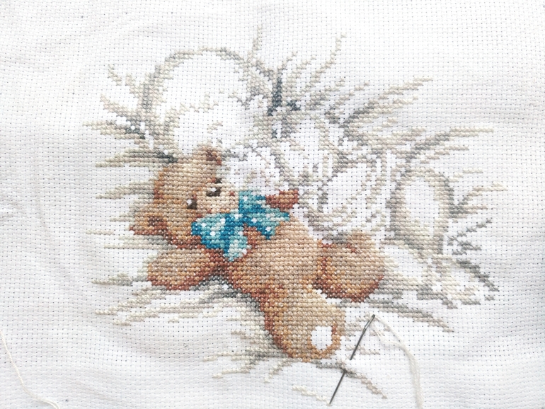 Все пытаюсь довышивать метрику для сыночка)) точнее заготовку с рисунком, именем и вставками типа Вес, Рост и т.д и т.п