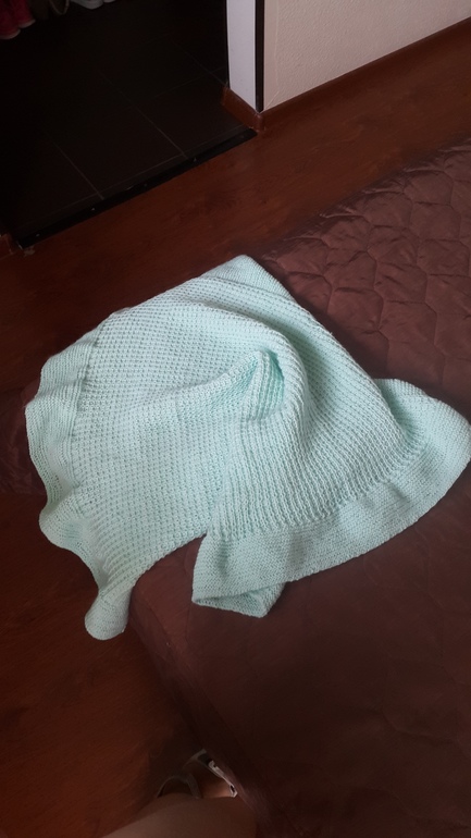 Я плед связала нежно годубовой цветра и конвертик вяжу если будет прохладнее. И еще думала связать тоненьки хлопковый комбенизон. И хб комбенизон который без штанишки не знаю как правильно называются