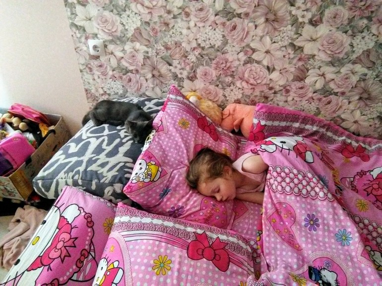 . А это моя любимая доченька старшая, Александра. И питомец Кефир)
