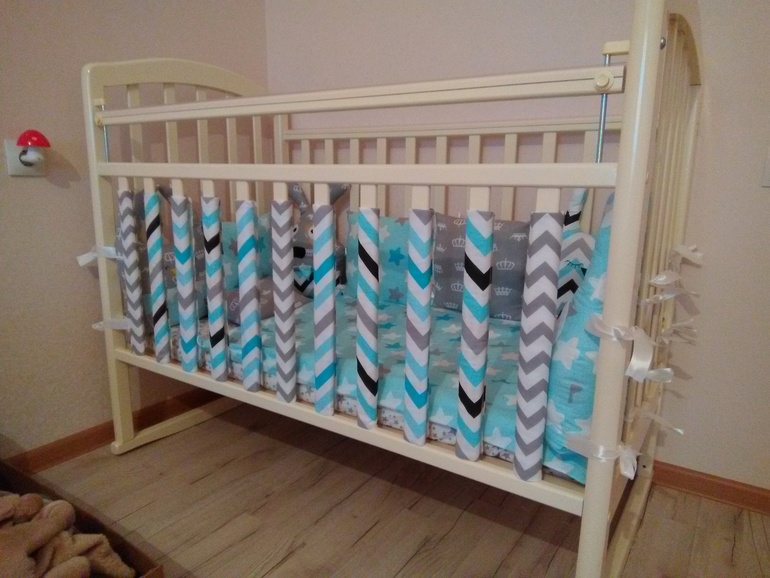 Какая классная идея- обернуть спереди каждую рейку. И ребеночка видно, и не будет ударяться. А сочетание цветов просто бомба😍