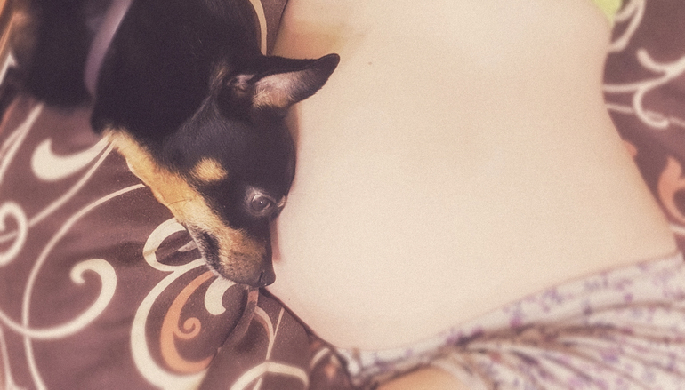 С пузом он любит сейчас общаться))лижет его,и получает ответ с той стороны))