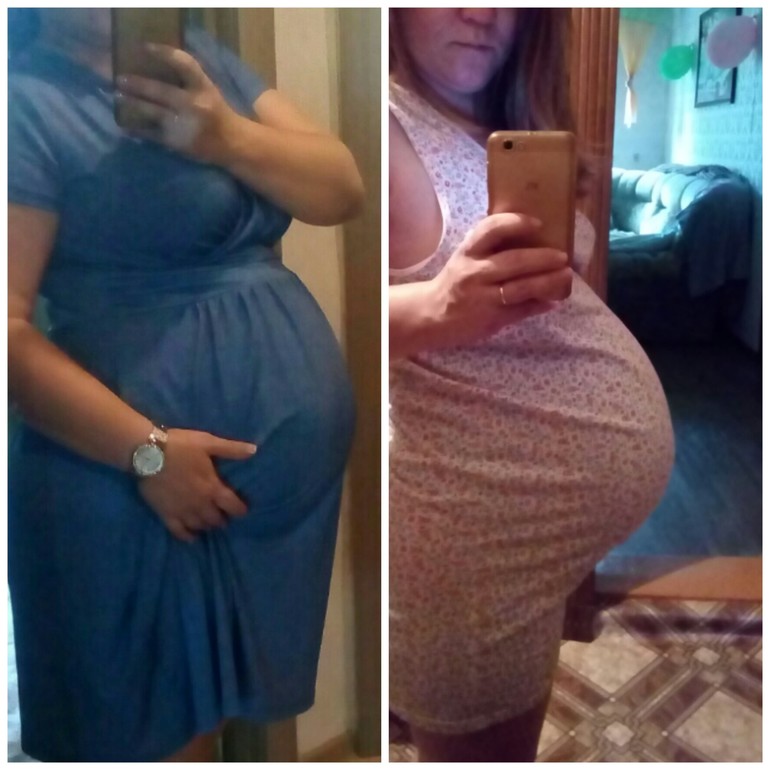 Сегодня уже 36, обалдеть! Прибавка за 2 недели 700 г., направление на дородовую ещё не дали, сказали нефиг там делать в 38, поедешь в 39. А я то не против, главное доходить до этого времени)) Треники прям ощутимые, а если положение тела меняю то тонус хватает. Все косточки пиписечные болят если долго лежать, а потом встать, походишь и нормально. Короче разваливаюсь потихоньку, ну ничего страшного, потерпим. Ремоооонт, наконец-то заканчивается, три недели мы не были дома, как же быстрее хочется туда, на выходных должны заехать. Ну и фото, 34 и 36 недель. Пока живём в деревне эти 3 недели ходим в ночнухах пол дня)) а чё, дом свой, двор, огород, красота, никаких заморочек))