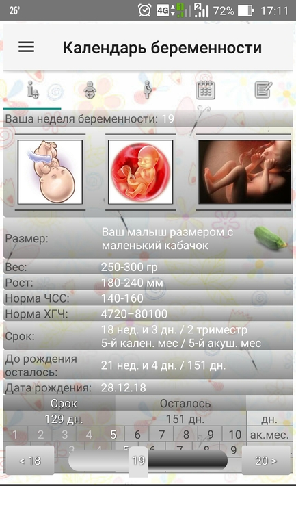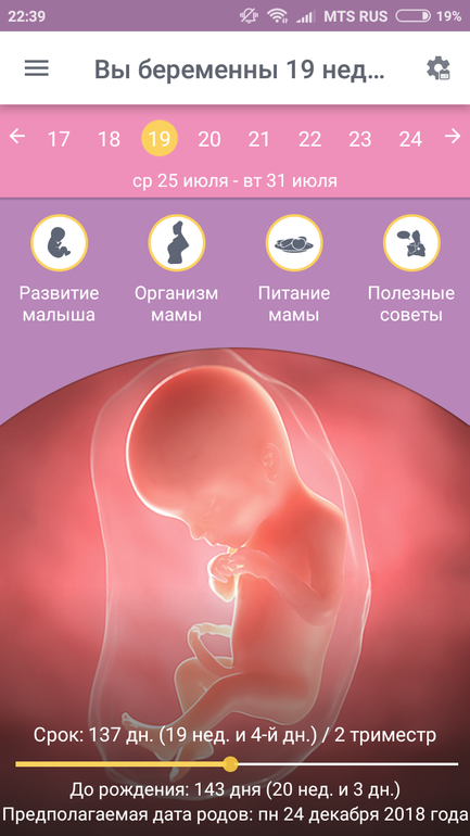 Вчера установила приложение и если выставлять срок по дате пдр то срок на сегодня 19н4д