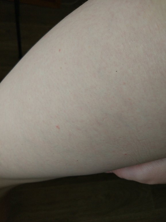 Здравствуйте. Появилась сыпь по телу. Что это может быть? Красные точки с белым ободком. Переживаю за малыша. 38 неделя беременности. Аллергия? Никогда не было аллергии. Не чешется.