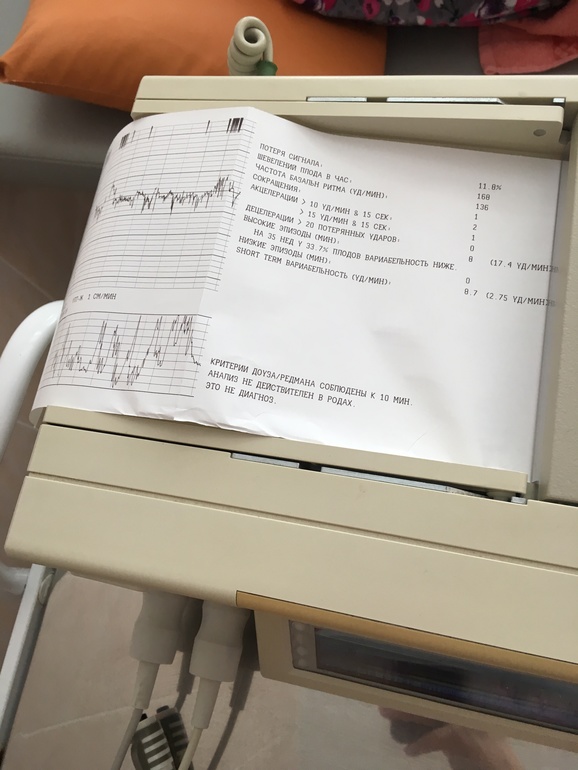 В соседней палате лежала девочка, которая тоже не чувствовала ничего. КТГ показывал схватки. Ну, медсестричка решила мол если не чувствует, значит не настоящие. Девочку даже на кресле не смотрели целый день. А потом вечером, уже часов в 9-10 пока мы лежали на ктг ( а получилось так, что я как -раз в одно время с ней лежала), зашла врач. Глянула у меня ленту, сказала "рано", потом подошла к барышне. Выражение лица врача было незабываемым. Диалог помню по сей день: