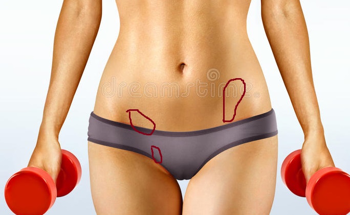 В последние несколько дней потягивает, иногда постреливает в местах, которые обвела на картинке. Ближе к вечеру, особенно если не полежать днем и неудобно сидеть за компьютером, может пару раз прострельнуть в промежность (не знаю с чем сравнить, но не так сильно, как когда в прошлую Б у меня была большая гематома).