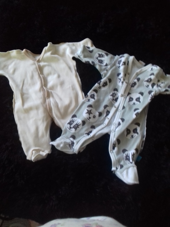 Слипики на первом фото. А бодики уже дома одевали, хотя один комплект боди + штаны я в роддом брала. Можешь и то и другое взять, там сама решишь как тебе удобнее будет.