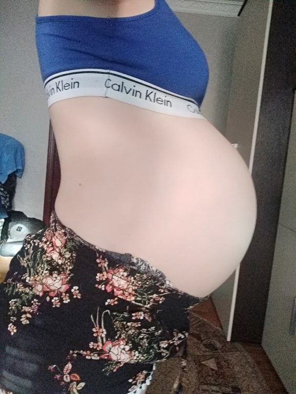 Как то бабушка перед родами подошла и говорит,вот как ладошка поместится между грудью и живот, тогда и родишь)))