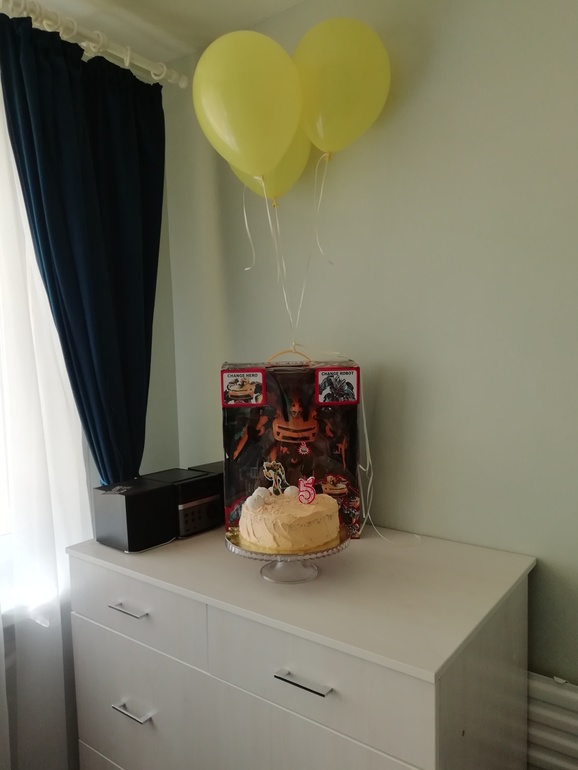 Тортик, конечно, же делала сама)) с шоколадом и бананом внутри)) крем-взбитые сливки. От подарка Яромир был в восторге)) отмечали в саду с аниматорами (они же воспитатели, у нас прямо есть такая платная услуга официальная) 😁👍😉