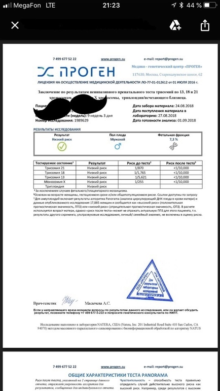Если есть возможность сделать тест - делайте! Непередаваемые ощущения радости от такой ценной информации, как пол, и успокоения от того, когда видишь "низкий риск, низкий риск, низкий риск..."