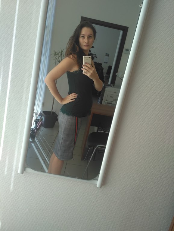 с другого ракурса юбка. Есть у меня и джинсы и брюки разного кроя, свитера. все можно носить как во время как и после беременности. собственно как в случае с платье где у меня синие губы)))