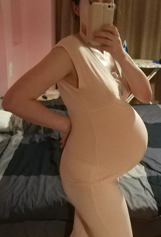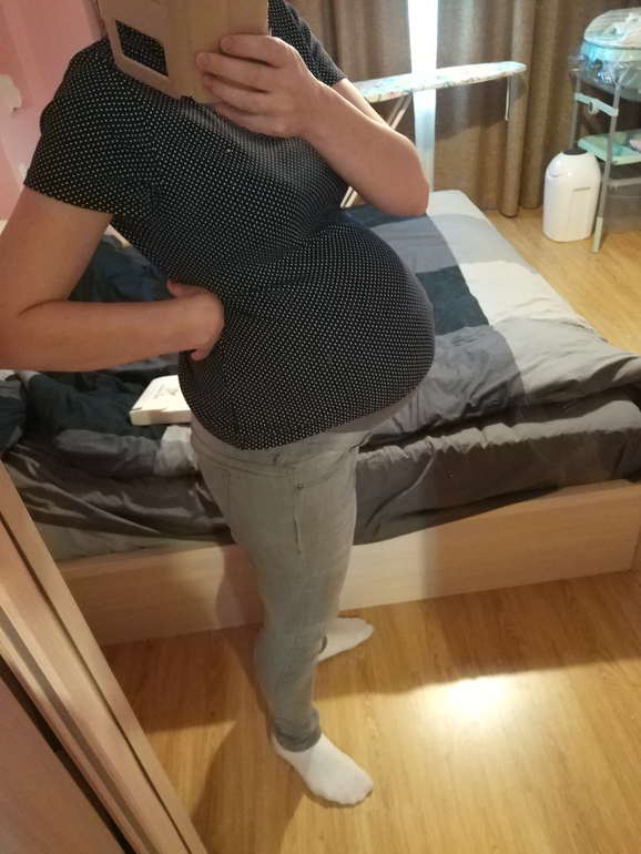 Видно сразу если опустился то пупок в низ смотрит)) и ладошка между сись и животом помещается😉. По мне вроде опустился, не очень понятно так как с верху сфоткано