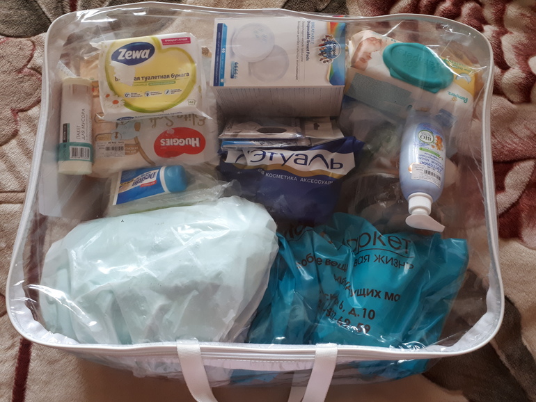Всё. Никаких тебе помад и попить. Благо меня быстро сбагрили на экс, не представляю как с таким набором минимум провести в родах много времени. Сорочку выдают одноразовую, вместо прокладки- суровая тряпа из пеленки, и держи ее там как хочешь.😀 Вещи для малыша оказались не нужны, там всех заматывают в казенные пеленки.